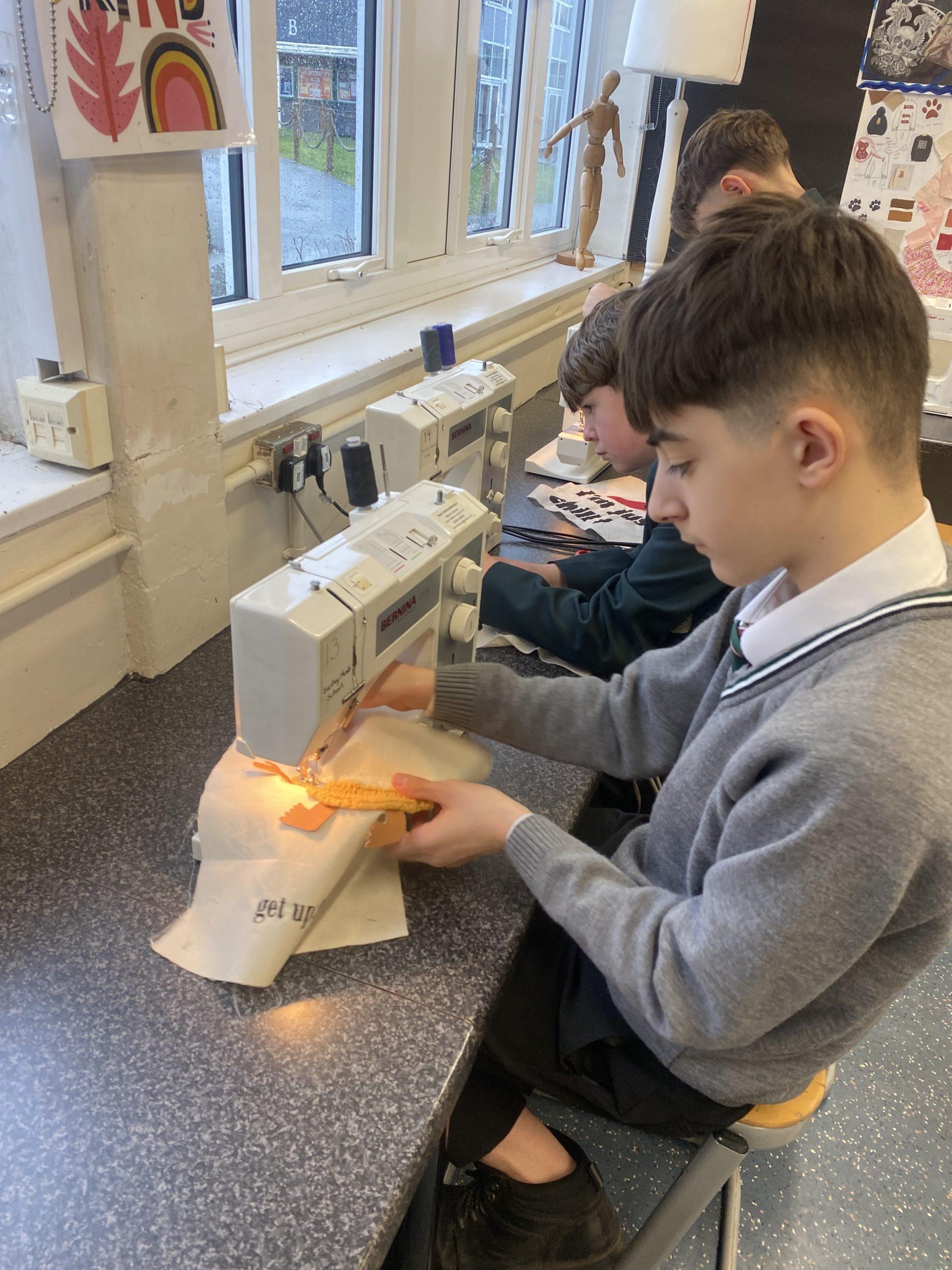 This week I had the pleasure of visiting a Year 8 Textiles lesson. The classroom was absolutely buzzing with productivity. The students, expertly guided by Mrs Pattni, were all at various stages of their project. Once they had reflected upon their progress from the previous session they set off to work cutting, sewing and sticking the room was a hive of excitement. It was lovely to see the relationships and trust between the students in the room, offering each other support and guidance on different techniques and how to improve their work.