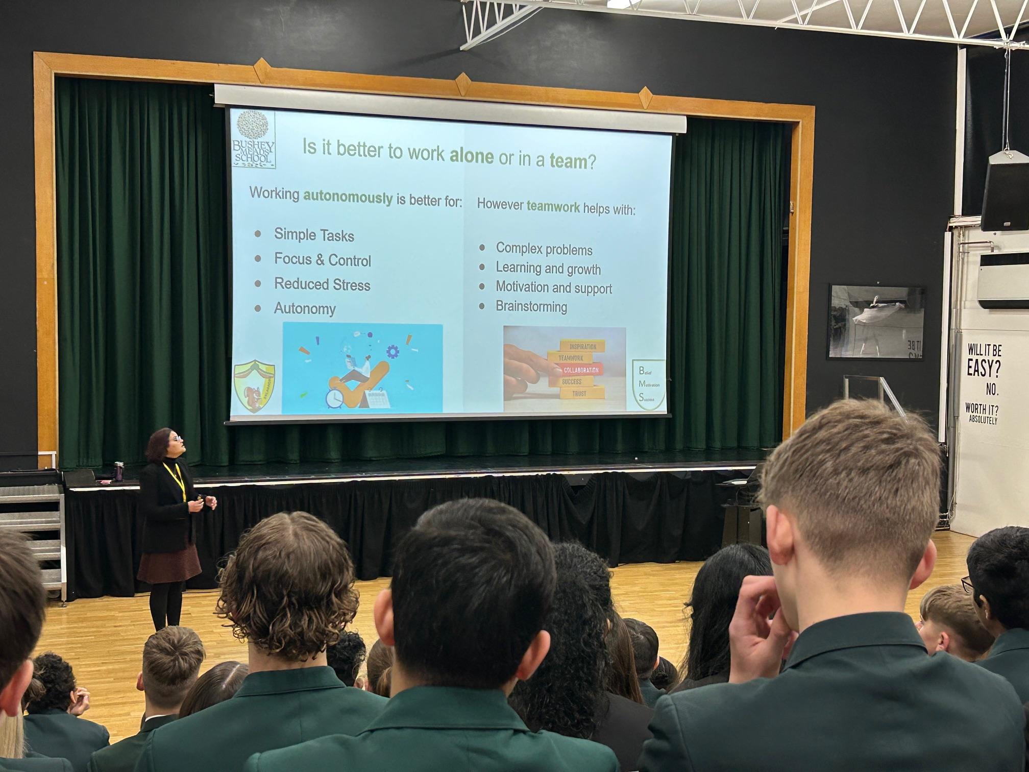 Head of House Ms Patel led an inspiring House Assembly for Sycamore House on Tuesday morning of this week. Under the theme of Working Together she provided lots of practical and compelling reasons why it is good to be able to work with others and enlist the true power of teamwork. Teamwork solves complex problems, facilitates the sharing of many ideas and different points of view, creates a sense of motivation and enables new learning and growth – personally and collectively.